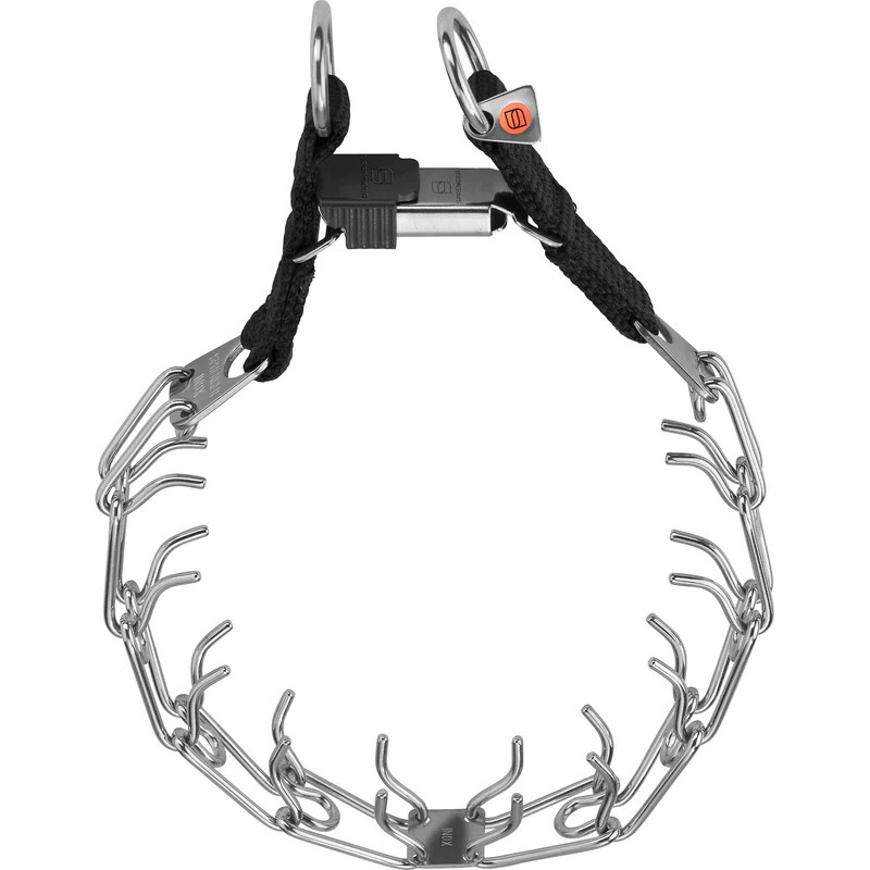 Парфорс используется только для дрессировки. Нельзя постоянно выгуливать собаку в строгом ошейнике, запрещено надевать парфорс в сильные морозы. Очень важно выбрать правильный парфорс у которого будет два кольца, предохранить на застёжке, разнонаправленные (снизу вверх) звенья. Необходимо правильно подобрать и толщину звеньев. Например, для средней собаки (40-50 кг) толщина звеньев должна быть порядка 4 мм.